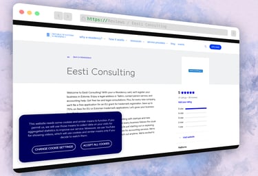 EESTI CONSULTING OÜ is a proud member of the Estonian Chamber of Commerce & Industry 🏦 and is highly recommended within the e-Residency 🌐 marketplace, assisting global entrepreneurs with company formation, trademark registration, and more. We have experience with trademark registration in Estonia and other countries, disputes with Intelectual Property Office.